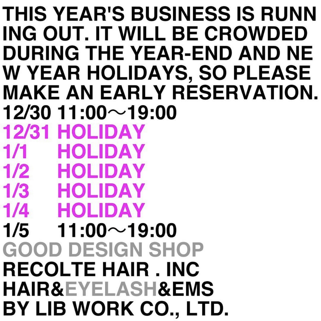 お正月休みとさせて頂きます!